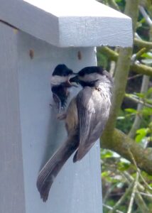 I’ve had a successful nesting box up for a decade, one that Dave made according to my instructions (drop length: six inches, hole diameter: 1.25 inches). Those are the precise measurements that proper chickadees insist on in a nesting box, and God only knows what chaos they have to put up with in the wild. Anyway, we’ve had tenants in there year after year. Not all of them successful, but all of them hard-working and sincere. I adore them.