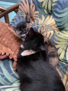 It’s impressive. I’ve been wondering what these two are doing with the voluminous amounts of kitten food they’re hoovering, and now I know. Every day they’re making an inch more Wally and Clifford and a foot of poop. If human kids grew that fast, we’d have them signed up for the NBA at nine months.