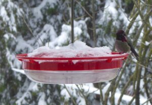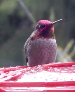 Most people don’t need to know much about hummingbirds to appreciate them. They’re compelling enough on their own. We have several species around here but by far the most common is special, even by hummer standards. Anna’s Hummingbird, like the goldfinch, doesn’t go anywhere for the winter. Little suckers either stay put or are replaced by others just like them; the crew is here all year, and the horny little bastards have a super-long breeding season.