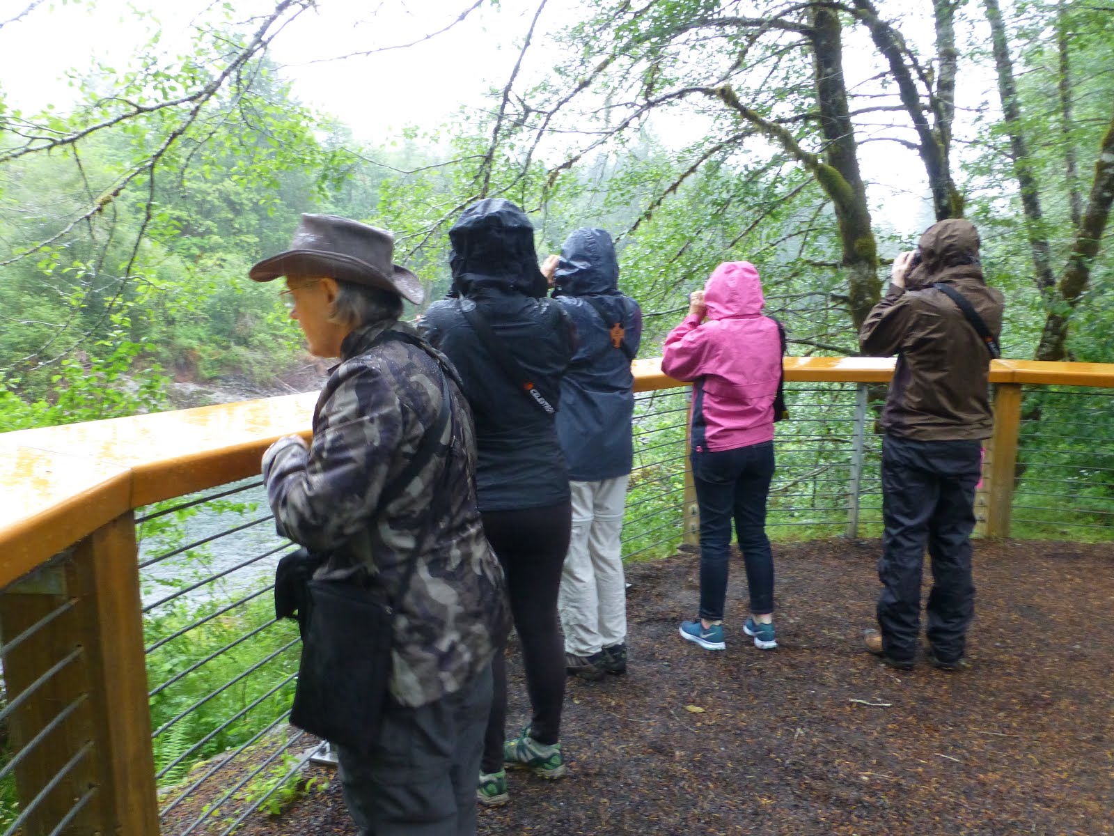 We did find the Dipper right away. Dippers are not much put off by rain. In fact dippers make a living by strapping on goggles and walking along the bottoms of streams for food so they don’t have to share it with sparrows. By that time it was dumping rain. I had on a pair of pants advertised as “highly repellent” (although I’m told they look nice), but nobody does repellent pants like a dipper. They come out of the water looking like Miss America.