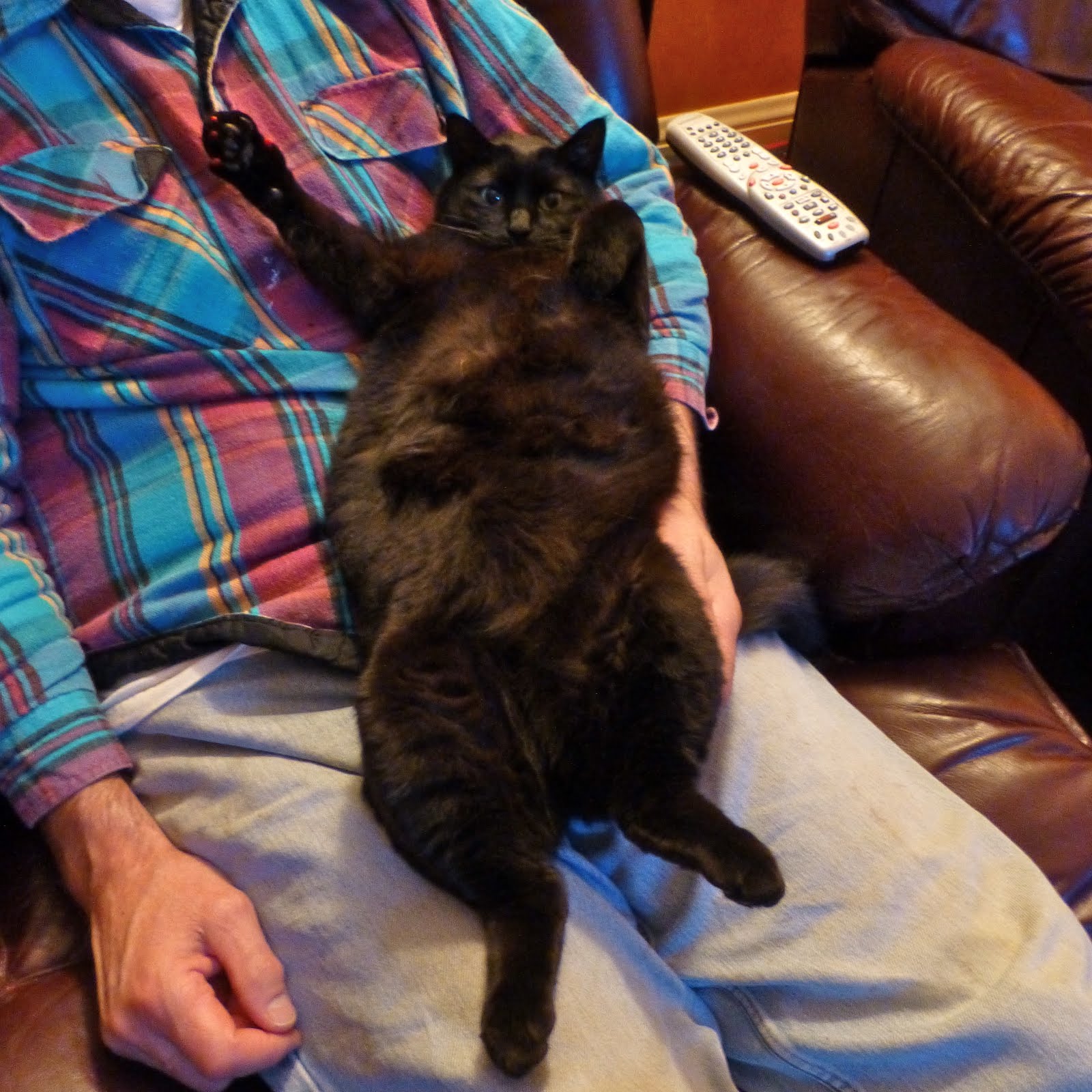 That used to be a thing I’d think about, the possibility of achieving an enlightened state of not-thinking, and I’ve achieved that state admirably, albeit in front of the TV with a cat on my lap. Tater is a cat of capacious and sprawly fur. Some people think she’s a little fat but I don’t. I think she just needs a certain ampleness of skin to hold all the guts and personality and purr in, and she sees no point in skimping on the containment vessel. You can move it all around. You can rumple up a section on her back and slump it over her ears if you want. Her fur is basically a big relaxed bag that is essentially cat-shaped but can be arranged any number of ways. She’s not particular. She has every confidence that everything she needs to be a cat is somewhere inside.