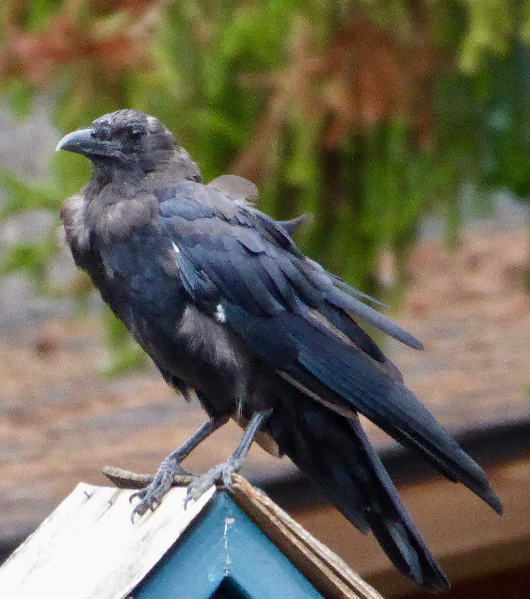 The crows are coming along nicely. Dickens and DooDah, along with their occasional companions Auxiliary Dickens and Ancillary DooDah, are accustomed to us and, I’d like to think, well-disposed. They’re still a little skittish, but they’re no longer so skedaddlish. Without question they show up when we do and project thought-images of peanuts in our direction. That’s not the same as landing on us with delicate chickadee teeny-feety perfection and a pure heart, but crows are larger and stabbier, so it’s probably for the best. Anyway, we’re working it out.