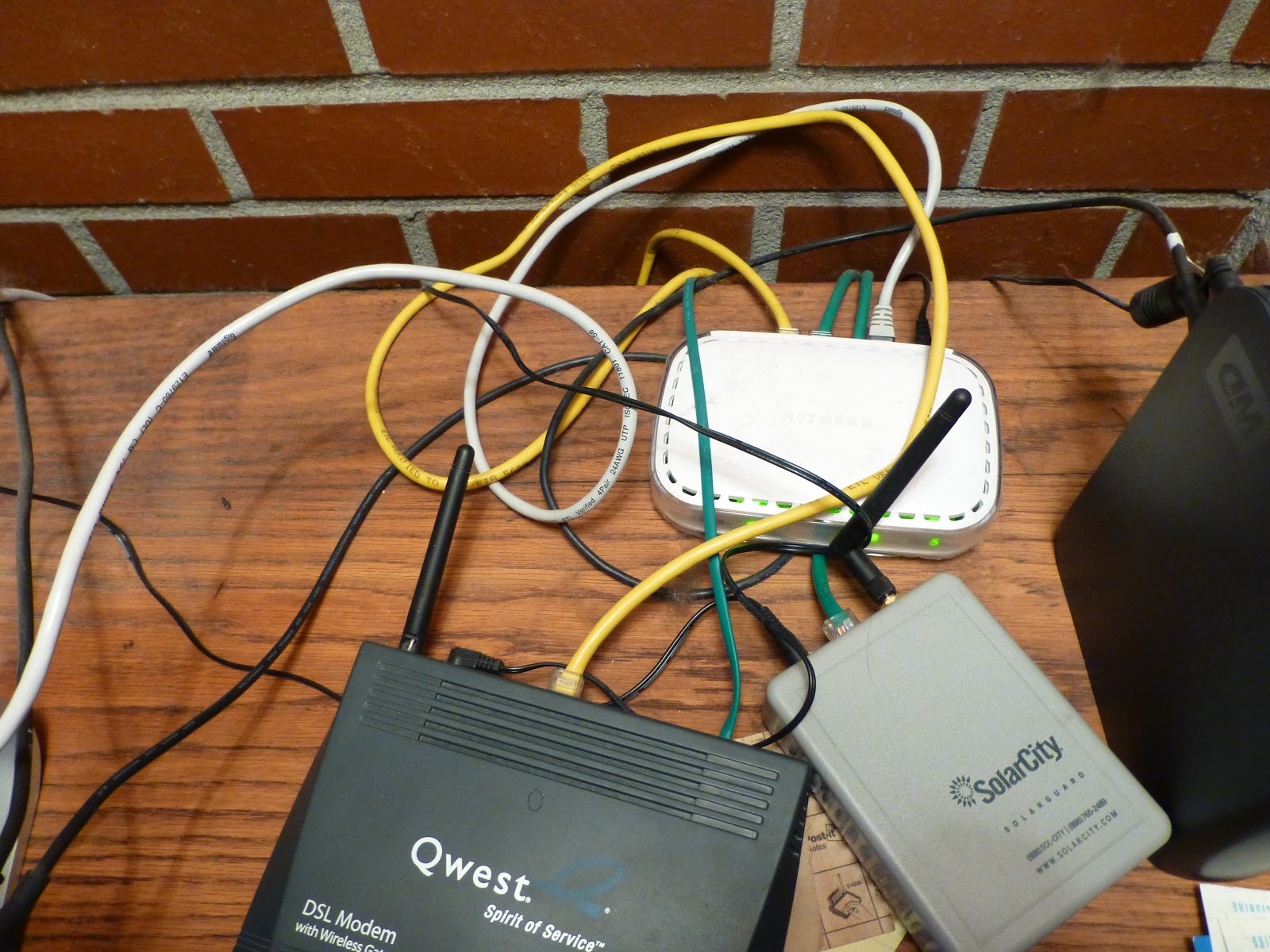 What a quaint expression! It harkens back to the days when things had A Plug, and you could Pull It. What I have in the nether regions of my desk looks like it should come with meatballs and a nice Chianti. I hover over the assemblage with the trepidation of the new guy on the bomb squad. I have a black cord, a white cord, a green cord, and a yellow cord, and several boxes they are servicing. One of them is a modem, I don’t know which one, and one of them is, I believe, the Flux Capacitor, function unknown. I select the black cord and pull it out of the two boxes. The chip clip is now back on the bag and it’s on a high shelf in the cupboard.
