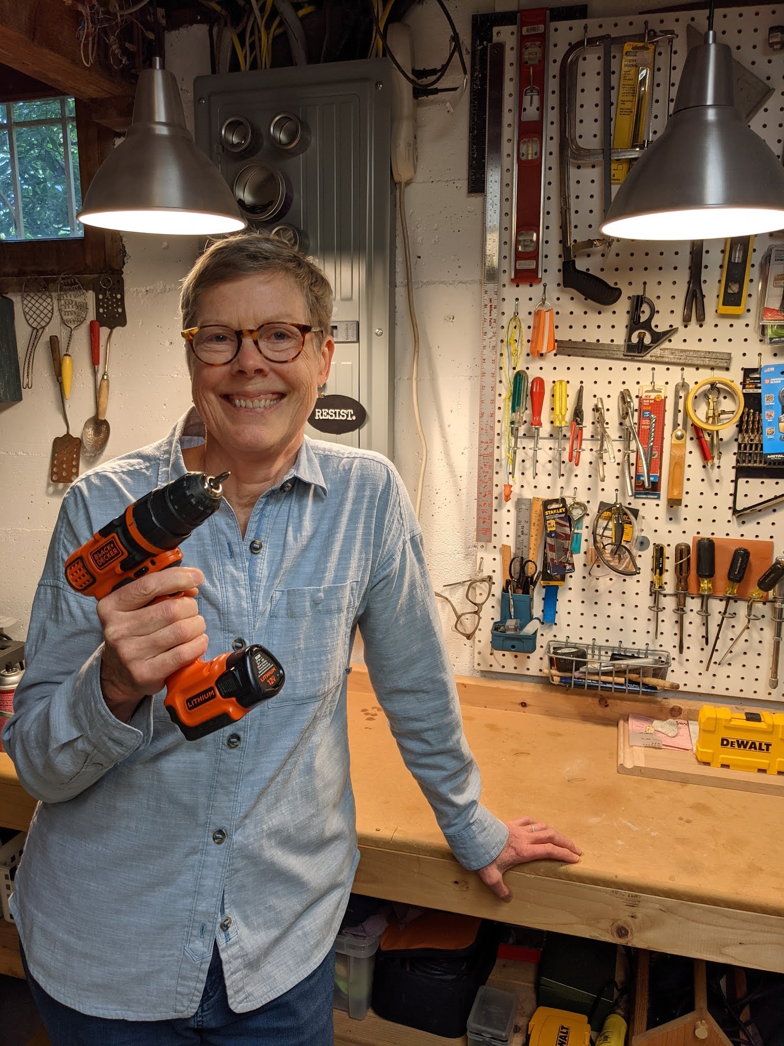 Leslie does everything. If there’s something at her house that needs fixing, she fixes it. She’ll spread seven yards of mulch in her garden between dinner and bedtime. She’ll clear the downspouts before winter, not during the first downpour. If she doesn’t have a tool, she knits it out of steel wool. Her to-do lists are all-done lists. Now that she’s retired, her whole neighborhood is liable to be shiny and unbollixed, just from leftover energy. She doesn’t dither. If she doesn’t know how to do something, she knows she can figure it out. She’s got skills and she’s got gumption.