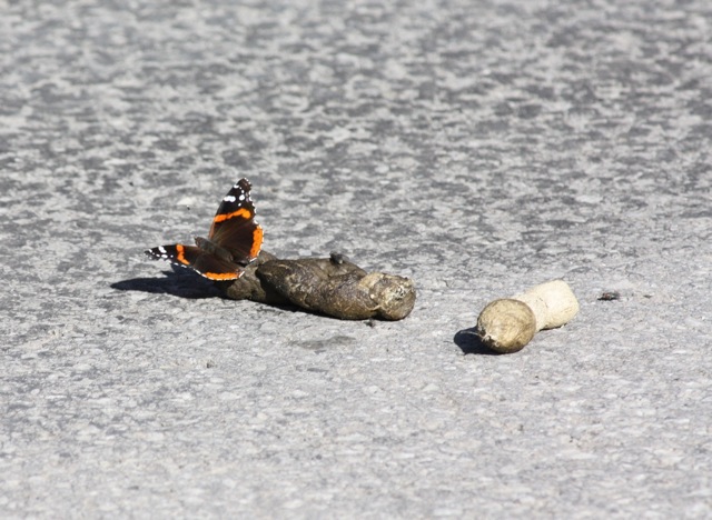 Oh yeah, butterflies and poop quite a common occurrence. They also like carrion for some reason. Red Admiral in your pic.
