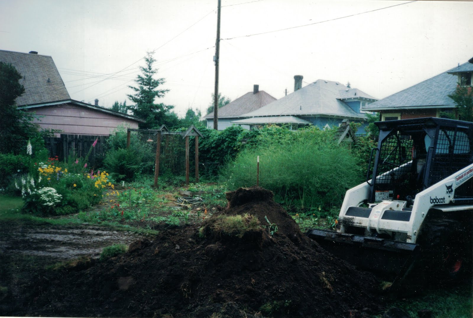 In its place, for a solid year at least, was a big pile of excavation dirt that Dave shoved around with a rented Bobcat. I announced my intention to do away with our lawn altogether, whilst grass sprouted audibly everywhere. One day we even got a visit from a city employee who hoped to pin a Nuisance notice on our door and scoot on out of there, but he was intercepted by Dave, who emerged in his bathrobe, kicked a beer can off the porch, hawked a tobacco loogey, and hooked a thumb toward the back yard. “Them’s just decorative grasses,” he said.