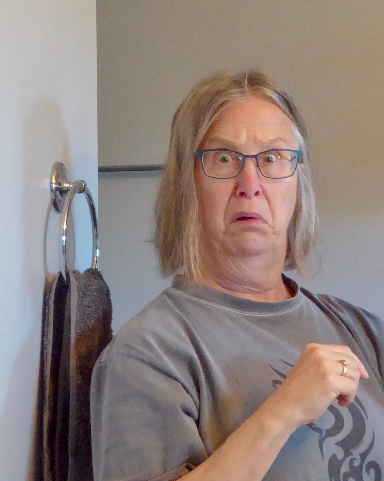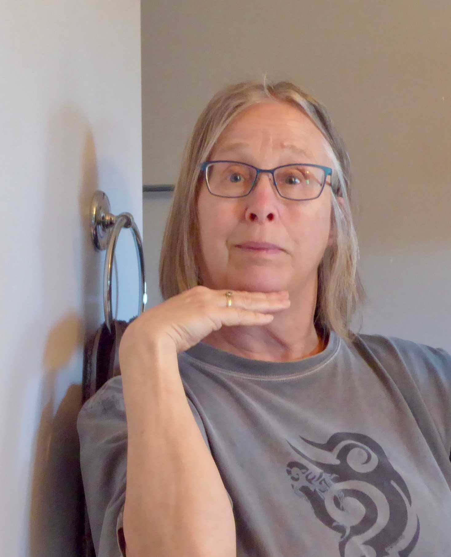 It might not have looked like it. I never did get locked into that trap of makeup and hair dye that women can’t extricate themselves from. But of course I cared. I had one or two things (two anyway) that worked out for me that I could play up, and some idea what my best angles were, and wanted to look nice in my clothes, although that project never really got off the ground either. If my belly stuck out, I tried to suck it back in.
