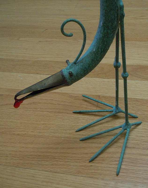 The candlestick holder was a beaut. It was a little metal sculpture of some kind of shorebird with long leggedy legs and a big beakity beak. I picked it up when we were cleaning out my sister’s house and claimed it for my own. “I love this,” I told Dave.