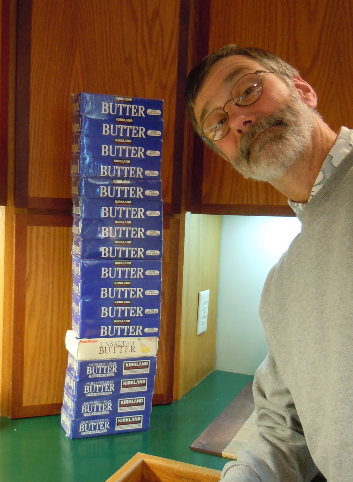Merrilymarylee, we had butter on or in every bit of Christmas dinner, but most of it went to Dave's Famous Almond Roca-athon. He's like Johnny RocaSeed. Bright tins of the stuff all over the nation, and the globe. If there is a heaven, this is what's going to get his ticket punched.