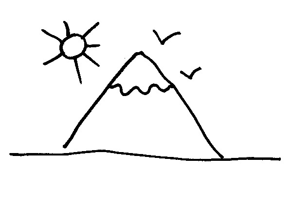 In Oregon, the earth pooted out volcanoes every other Sunday for a long time. Mountains of all shapes jut into the sky. We were hiking amongst them, and one of them looked newer than the others: a nice, smooth, uneroded cone with some snow on it. It got me thinking about kids, and how they draw.