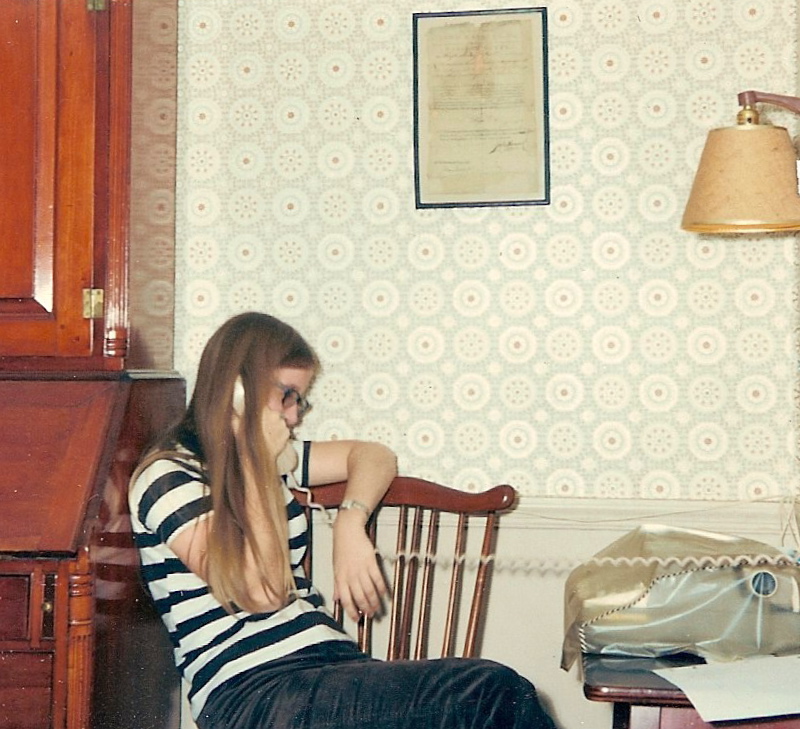 Another thing that’s changed is that people call each other up now just to find out where they are. We used to know exactly where someone was when we dialed her number. [Dialed? Look it up, Petunia, I don’t have all day.] When I called my friend, I knew she was lying on her bed, admiring her toenail polish and languidly twirling the cord on her Princess Phone. My parents were not so indulgent as to provide me with a bedroom phone, so I was in the kitchen with the phone cord bent around the corner, leaning up against the boomerang-spangled Formica countertop as far away from my parents’ ears in the living room as I could stretch the cord. GPS, hell. We could pinpoint each other’s locations within microns.