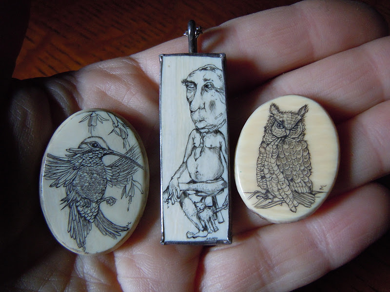 Regarding the middle scrimshaw: makes me think the saying should be changed to a face only a kitty could love. I love the way you nailed the kitty lean on the leg.