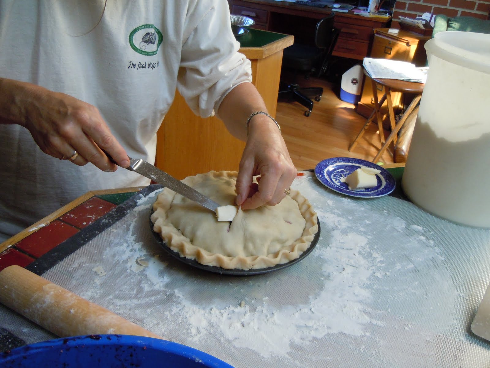 Blackberries are found in a number of items, including cobblers, pandowdies, slumps, grunts and flummeries. (They are particularly prevalent in bear grunts.) Pies are my choice, even though pie dough tests my own threshold of pain. There are only five ingredients in a pie filling; my tradition is to leave one of them out. That is what the slits in the top crust are for: you slide the butter pats through them.