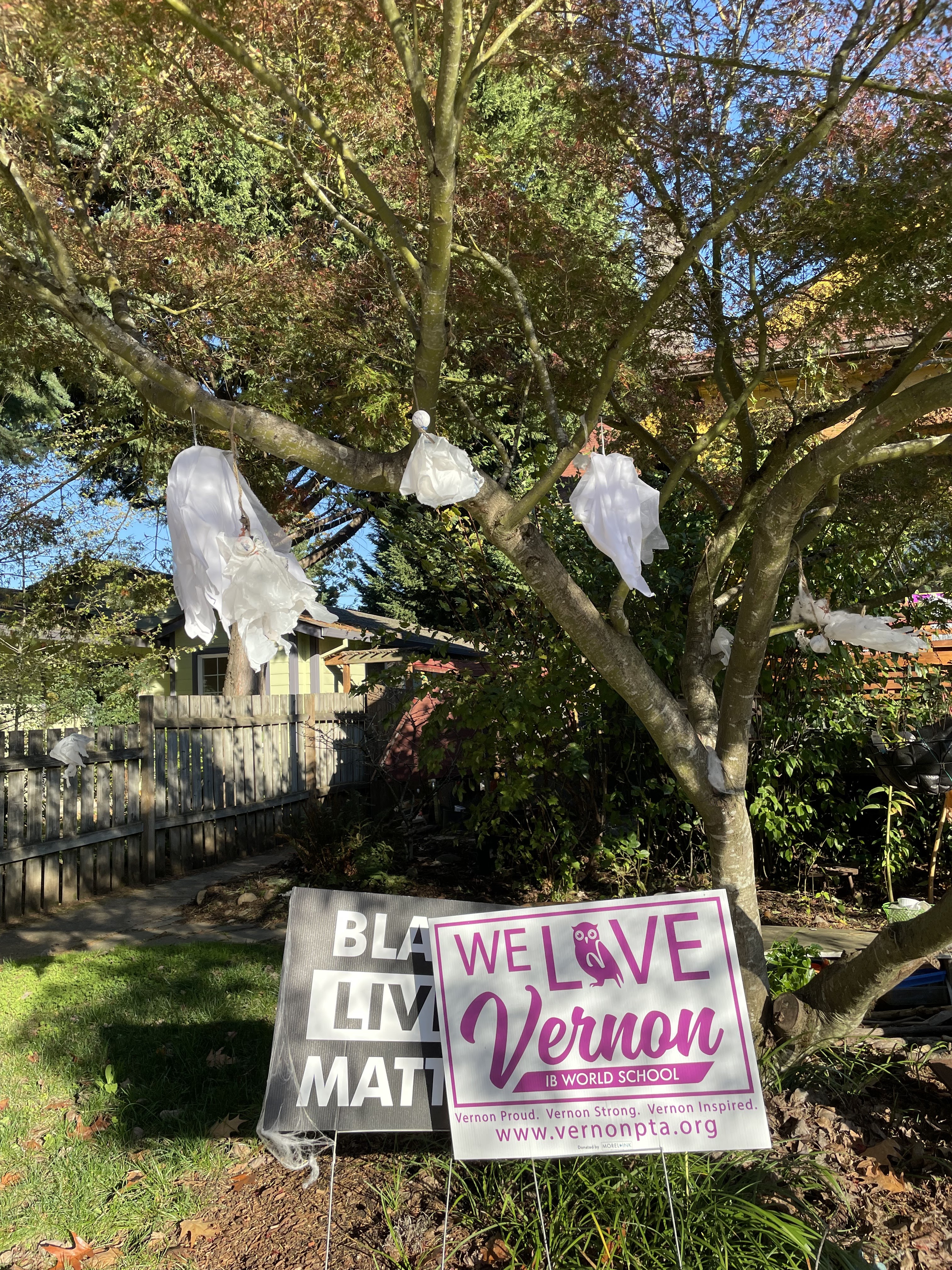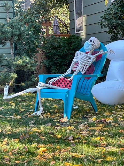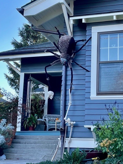 Well, one of the over-decorated yards in our neighborhood is at a house that gives me shivers all the rest of the year too. It’s not haunted. It’s just not nice. The people who live there make a point of turning away as you approach, when everyone else smiles or pauses to chat. Their lawn is an unholy green in August with the tell-tale brown patches that betray there is no healthy life therein and the only thing propping it up is frequent infusions from Chem-Lawn. Their dogs are out in a kennel. And the Halloween decorations that aren’t completely plastic require power to inflate.