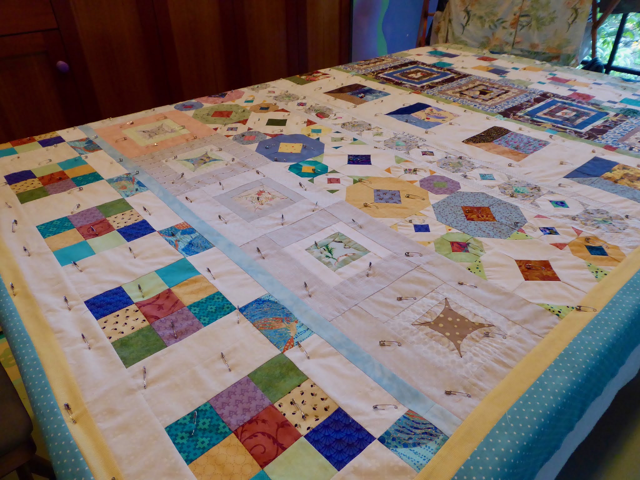 I'll be pinning a quilt in a day or two (waiting for the batting to arrive via UPS) and have been wondering if I have enough pins. For awhile I used a gun, the kind they use to attach tags to clothes in stores, but abandoned it because it seemed like I never found and removed every plastic fastener after quilting. Reading your post reminded me I need to be sure the backing fabric is more than big enough. I have dealt with that problem in the past and can live without a repeat.