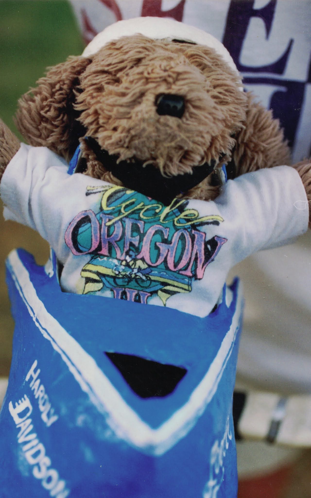 The Spandex, at least, makes a certain amount of sense, and reduces chafing, but does not solve all the problems in the shorts region. On one long trip, I emerged from the porta-potty with a distinctive hitch in my git-along and eased myself back in the saddle. A woman rode up to me and said, quietly, medicated diaper powder, and then rode off before I could thank her.