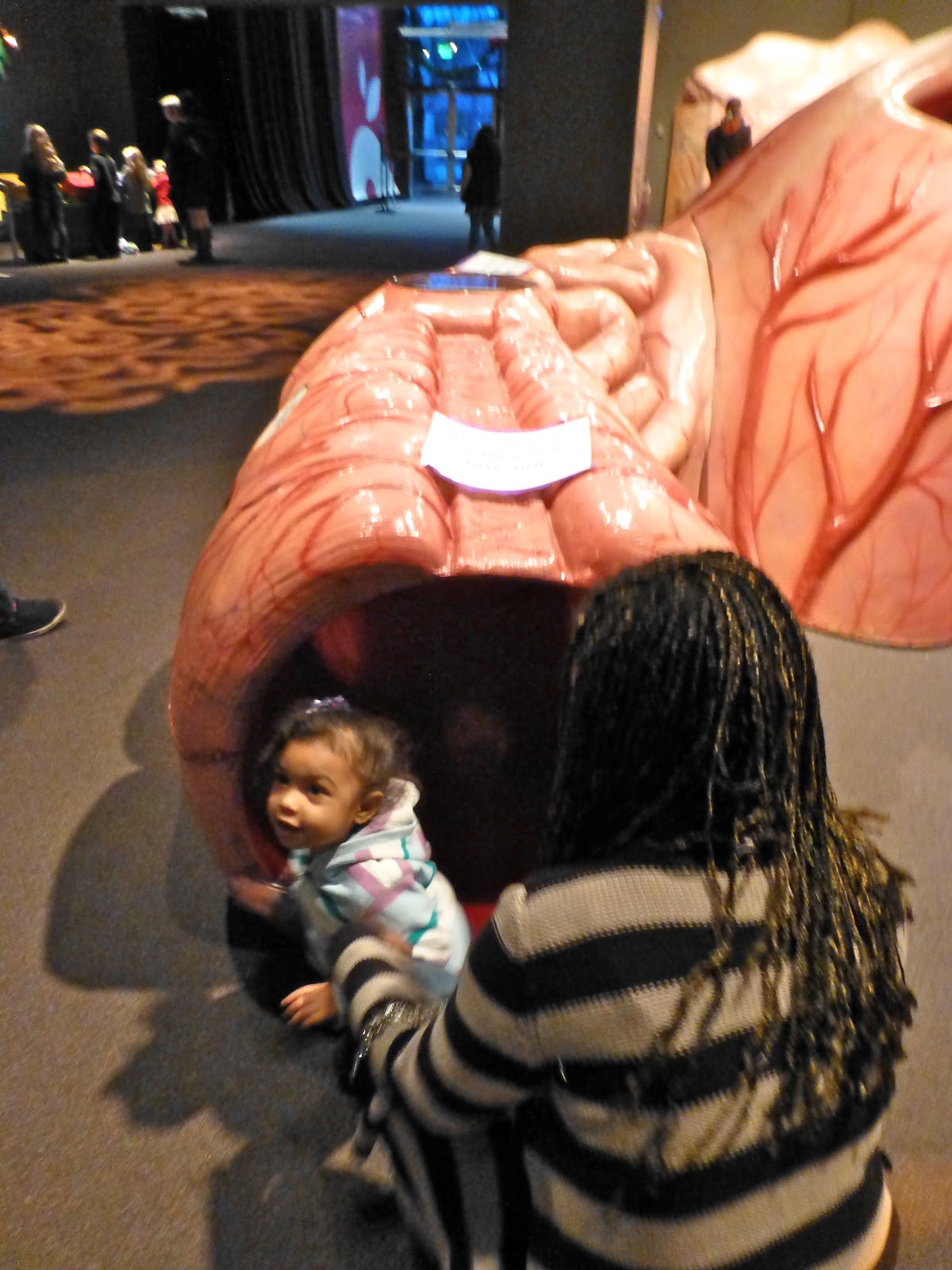Adults were enchanted also. “This is right up our alley,” the newspaper quoted a visiting mother, although she was probably referring to the intestine exhibit. There was an entire gastro-intestinal tract set up for kids to slide through, and a lot of information, almost more than a person could digest. “You must be this tasty to enter,” the sign said (oh, I wish it had), and enter they did. And exit. Cute little shits they were.