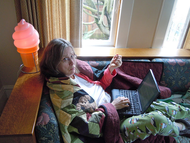I find it hard to be uncheered when that lamp is on. Thanks about the handwarmers, but I spend a lot of time trying to expend heat.