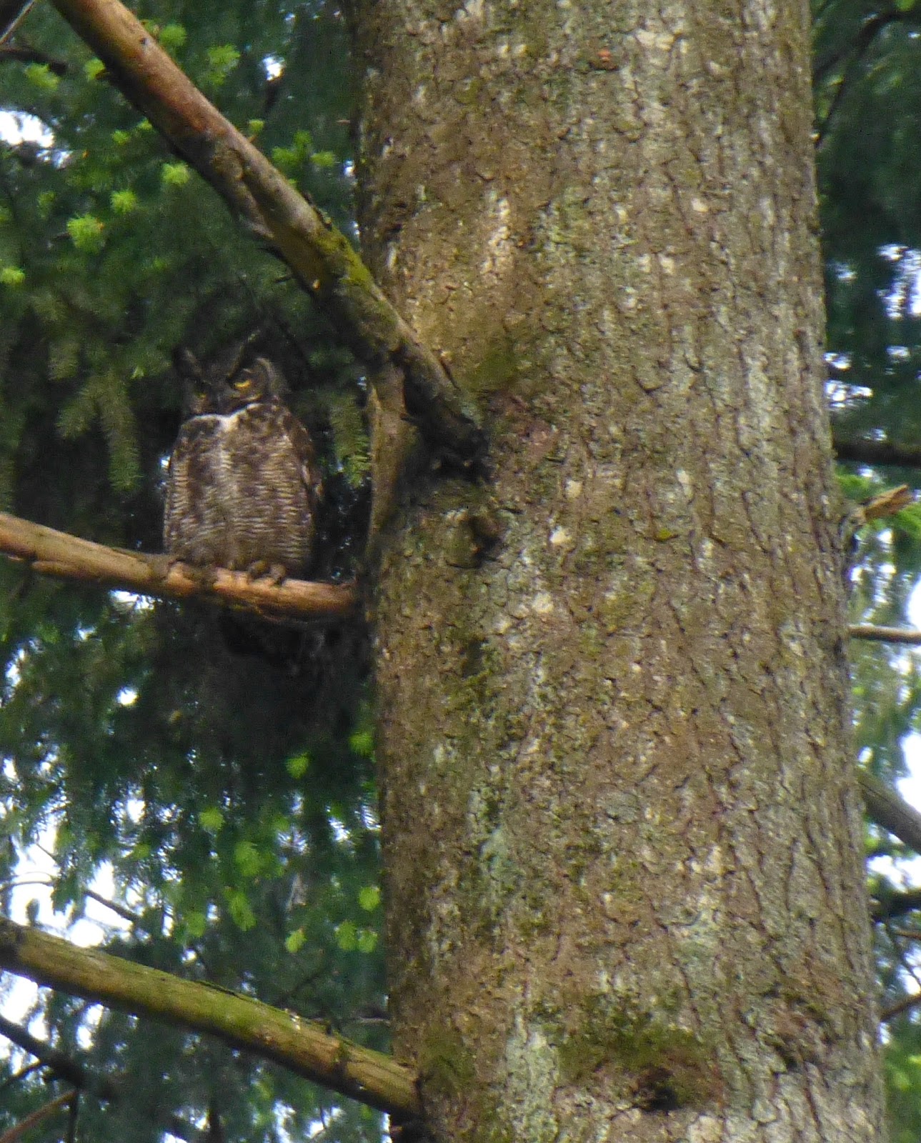 I've never seen a long-eared owl. They're a little skinnier, right? This is a great horned owl. Taken from a great distance with an itty bitty point'n'shoot.