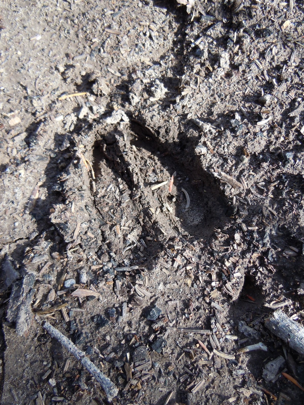 So when Dave and I took off on another hike on Mt. Hood the other day, and saw tracks, we strapped on our imaginary ranger hats and had at it. Cat prints, by the looks of them, accompanied by cat shit, furry and tapered, and in every respect like our own cat’s, only far, far larger. We ruled out Domestic Cat from the range map. The shit was still damp and shiny, and there was lots of it, so whatever had left it was probably nearby and had a spring in its step. What could it be? Like a cat, only far, far larger? We decided to try shrinking our Zone Of Disturbance for the first time in our lives and crept onward, silent.