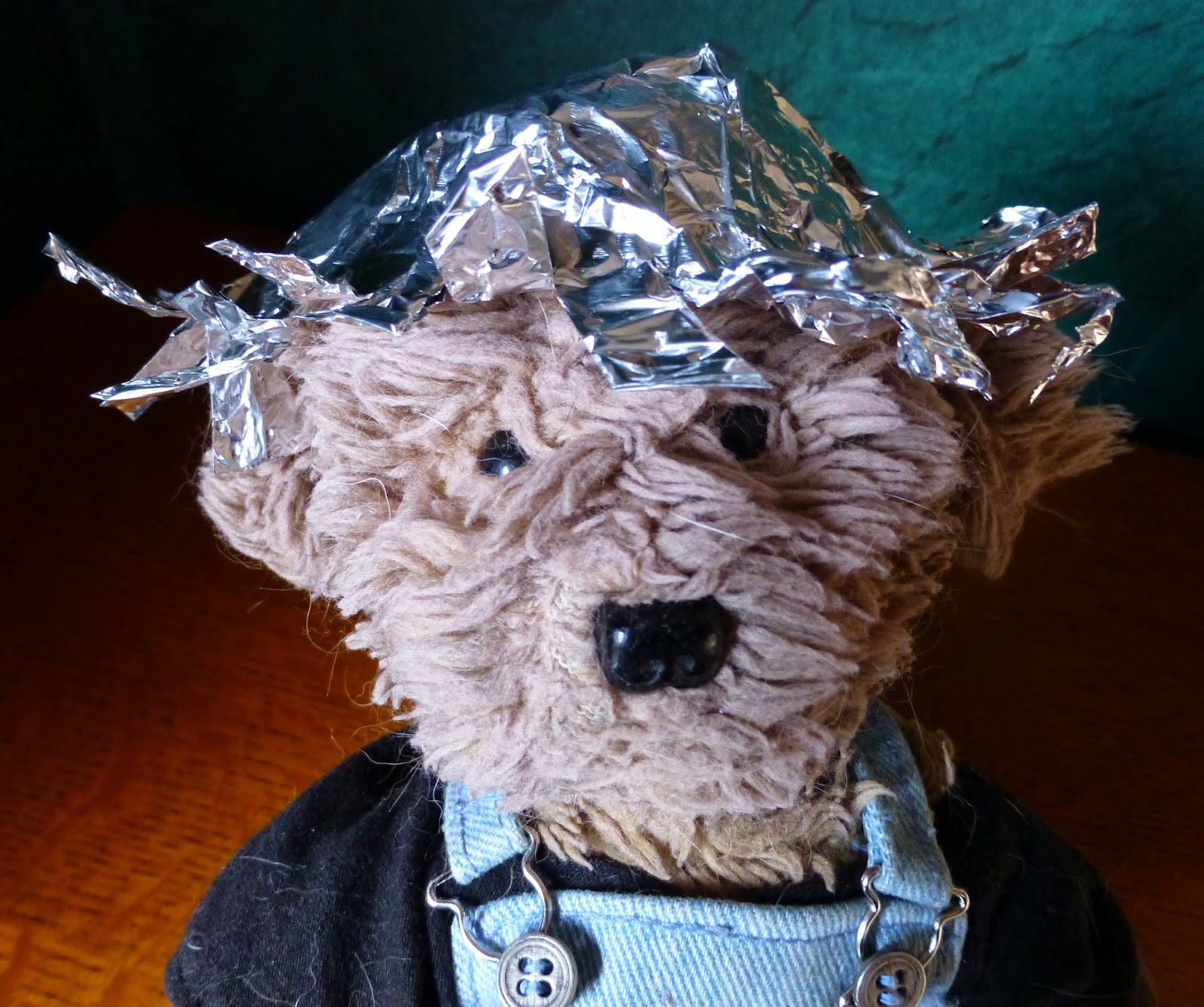Love Pootie's tinfoil hat. I keep cents-off coupons for aluminum foil in my purse and hand them out for the whackadoodles that hang out on the fringes of my post office. "There", I tell them, "now you can afford to reline your tinfoil hat!" They rarely think I'm as funny as I think I am.