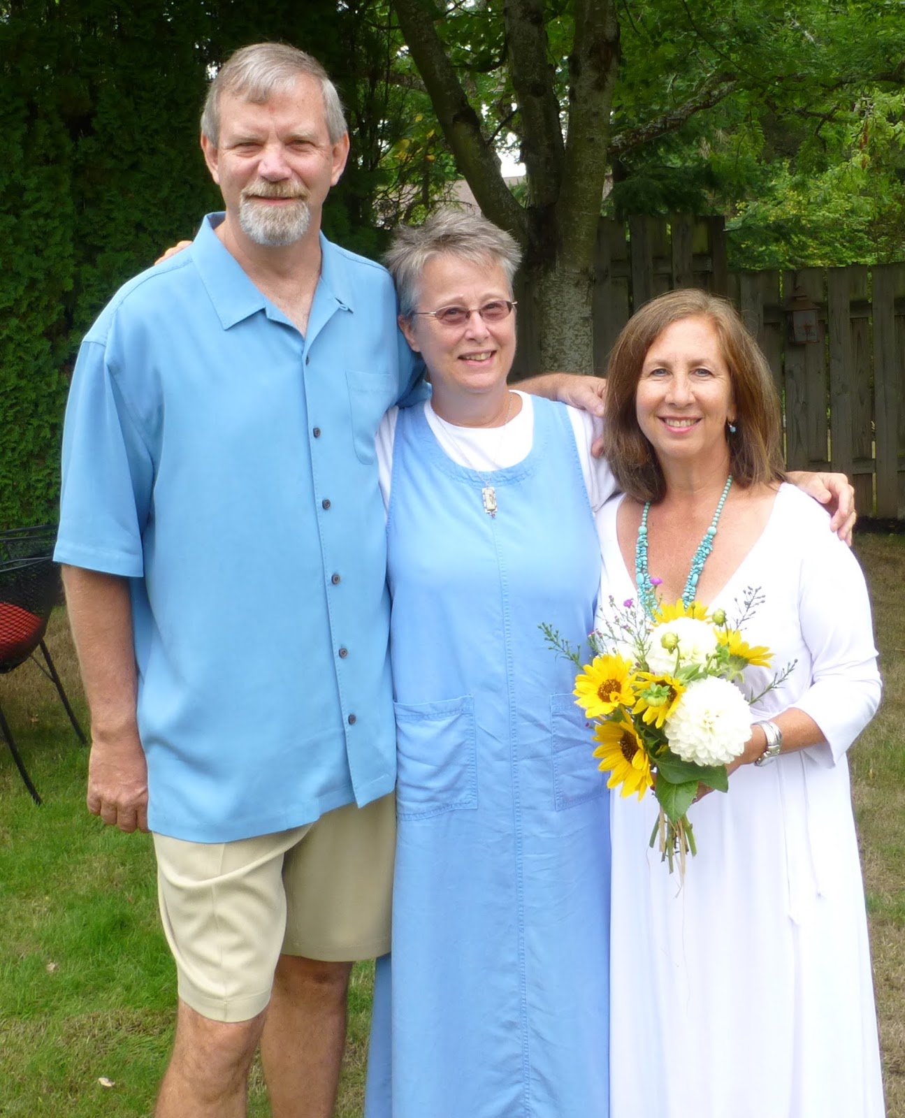 Gina became a mother, a really good one, and then went for two because the first one turned out so nice, and much later she divorced. If you had told me, in 1979, that I would marry Gina, I would have thought you were nuts. I was plenty on board for the possibility of gay marriage some day, but as much as we resembled each other, we weren’t each other’s type. Our types mostly have penises. Nevertheless it happened. Gina reconnected with a fine man she had dated early on, and Kevin and she were married last week, with the Reverend Murr officiating.