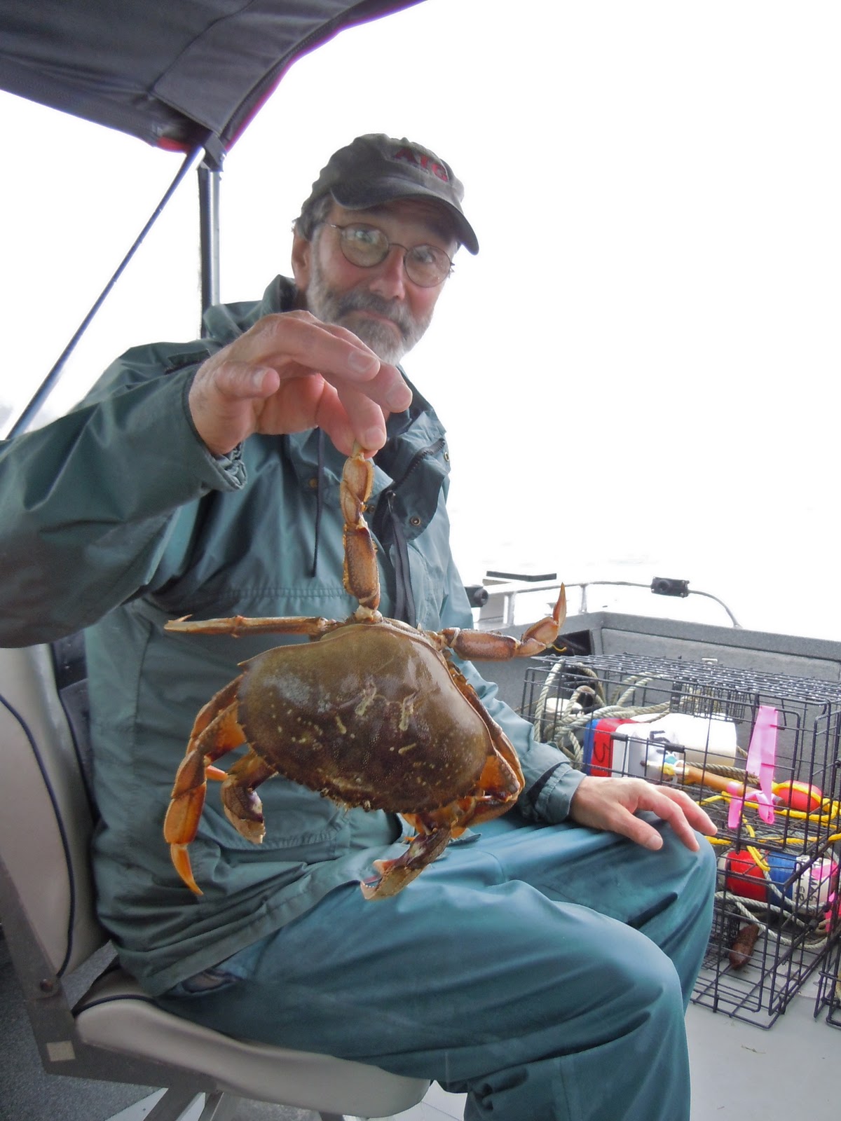 There’s nothing better than good friends. But if there was, it would be good friends with a boat and a beach house. Our good friends Margie and Tom invited us to the coast for a combination fishing/crabbing expedition, which meant there was something for everybody.  I love to fish, and Dave loves to crab. Fishing is wonderful. You can fish all day long without ever having to come into contact with anything slimy that needs to be slain and gutted. There you are with your pole in your hand, trolling along in the rain, knowing that at any moment something exciting might happen, or not. Just like life, and I like life. Many people, including Dave, profess to be bored by holding a motionless fishing pole for hours on end, but they do not properly appreciate anticipation. Which is the best part of Christmas, after all.