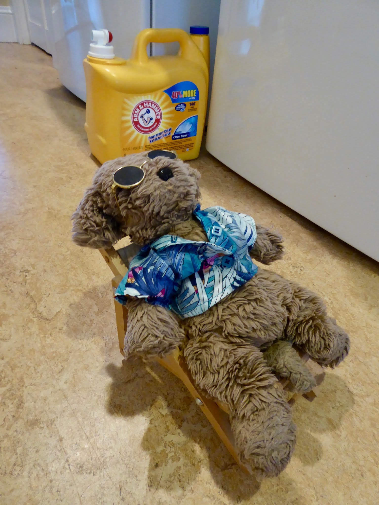 I recognized the new feature as the entire contents of a brand-new vat of Arm & Hammer Laundry Detergent, set free, and I paused to admire the levelness of the floor. No pooling was observed: the floor was able to accommodate the detergent over the broadest possible expanse given its native viscosity and local conditions of temperature. In other words, it was every the fuck where.