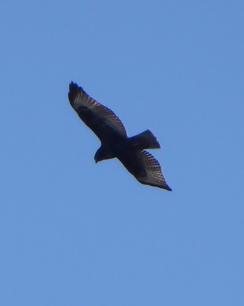 But hawks. For Pete’s sake, I should know my local hawks. Birds of prey have distinct shapes. And it’s not like there are a million choices. If I see something hawkish, I should be able to pick it out from the small list I’m likely to see in this area. Shouldn’t I? There are all those helpful guide books with the hawk silhouettes all stretched out for you. This should be a snap.