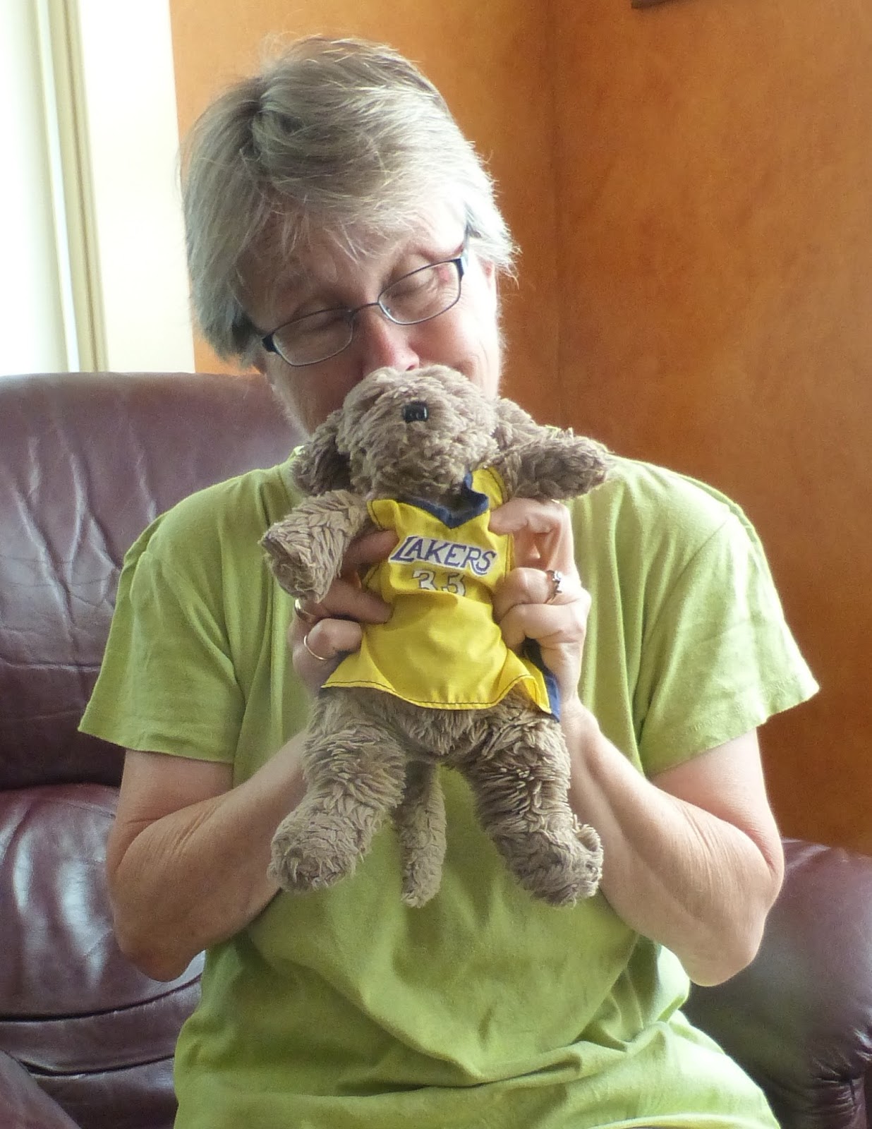 Pootie is an expressive guy. “Pootie wants to know,” Dave will say, as the Poot nods enthusiastically, “if there’s any more chocolate.” Nod nod nod. “Pootie wants to know,” Dave will interpret, “if the basketball game is on.” Nod. When we get home, I will press Pootie’s head to my nose to inhale that rich, dear, complex aroma of dust and mildew and ferny woods. It makes me happy. Pootie is a great communicator. It’s just that he has to be right there with you.