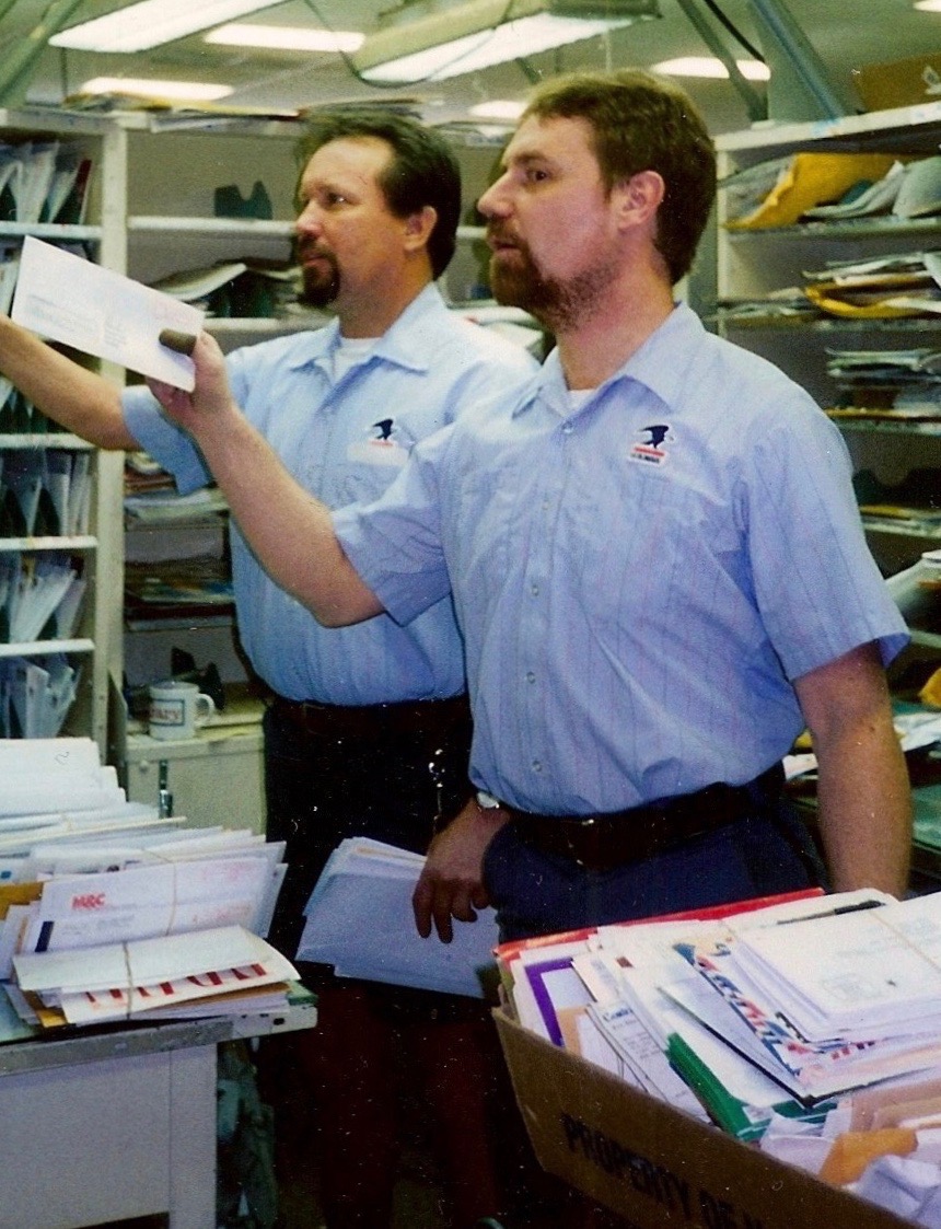 It’s a different kind of job. Old-fashioned. Here’s how it was in my day: every morning, before dawn, we show up at our sorting cases. There are hundreds of one-inch-wide slots representing one or two houses each, and we need to pick trays of letters up off the floor and find little one-inch homes for each letter. Typically, there are three thousand pieces of mail to find homes for. Then we walk out of the station to find their actual homes and stick them in there. It’s basic.