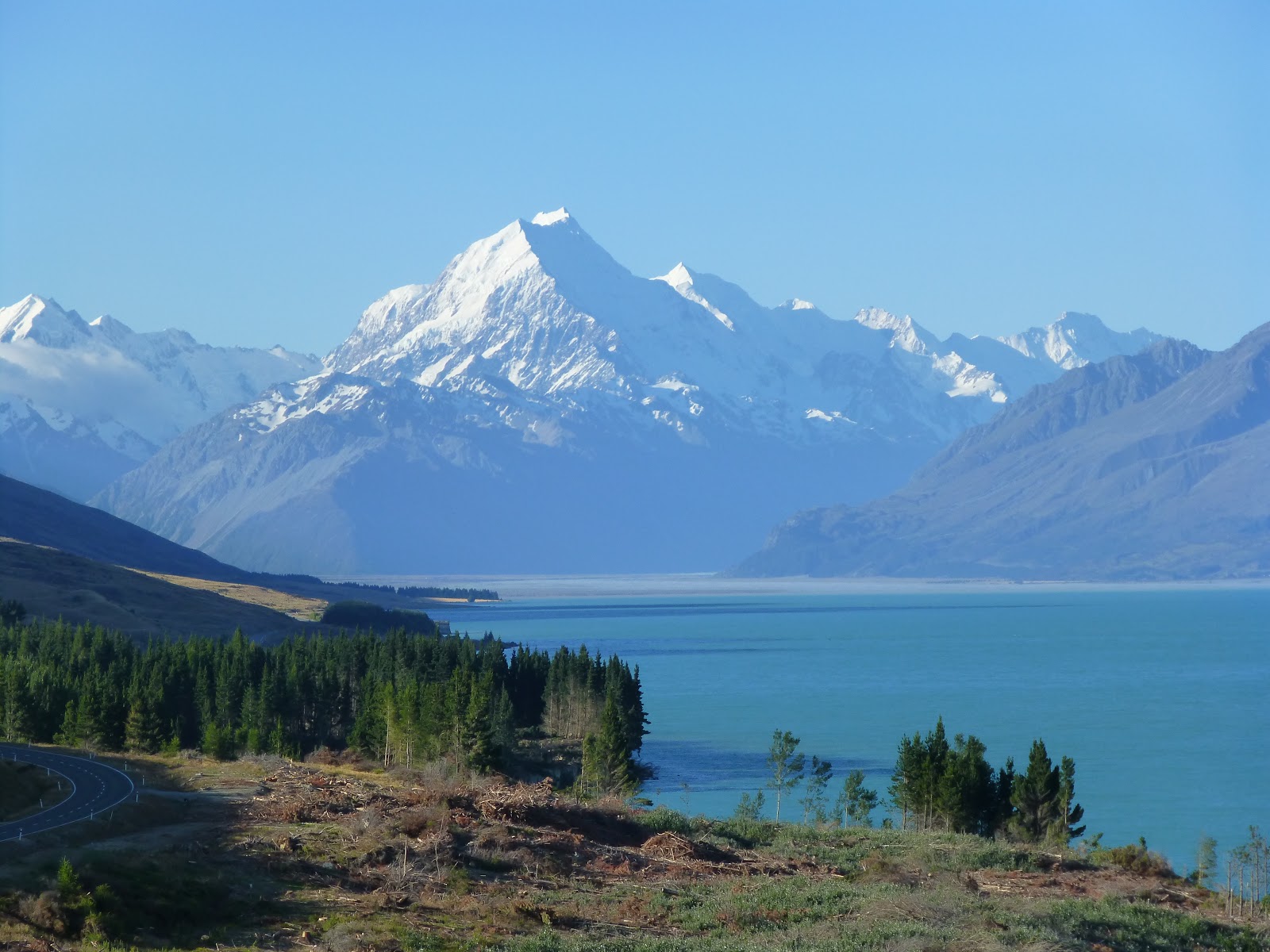 Mt. Cook, the tallest mountain in NZ. And those ridiculous turquoise lakes. Nothing subtle about this place.