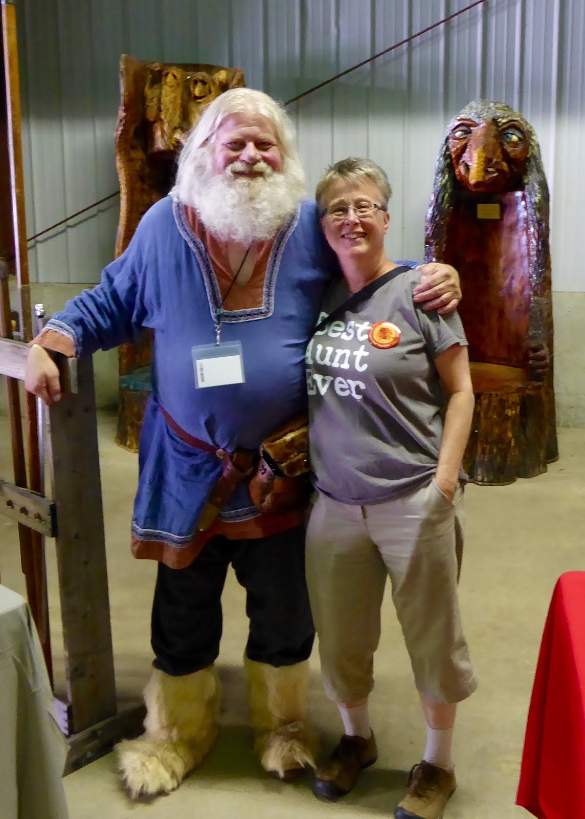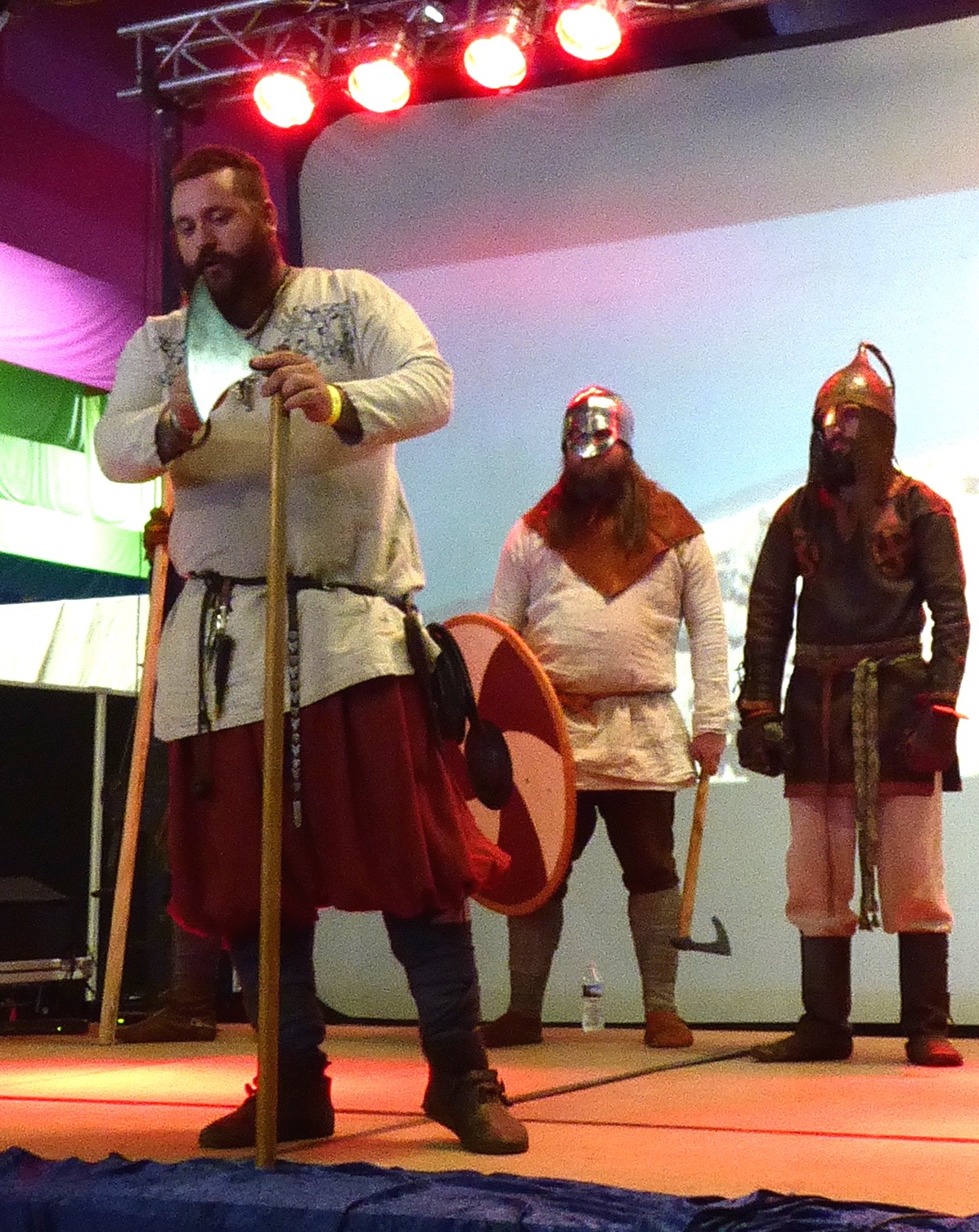 Most of them had holes in their clothes, but those were authentic, too, and come from their hobby of slicing each other up with massive axes and spears and what have you. You’ll find none of your dainty arrows and epees here. We were treated to a demonstration of Viking fighting techniques which left no doubt that the standard outcome was death and gore and finality all around: clobber and cleave all the way to perdition. Consequently, all of the violence has long since been carved out of the gene pool and only the inoffensive and amiable remain, some of us still wearing our heritage pajamas.