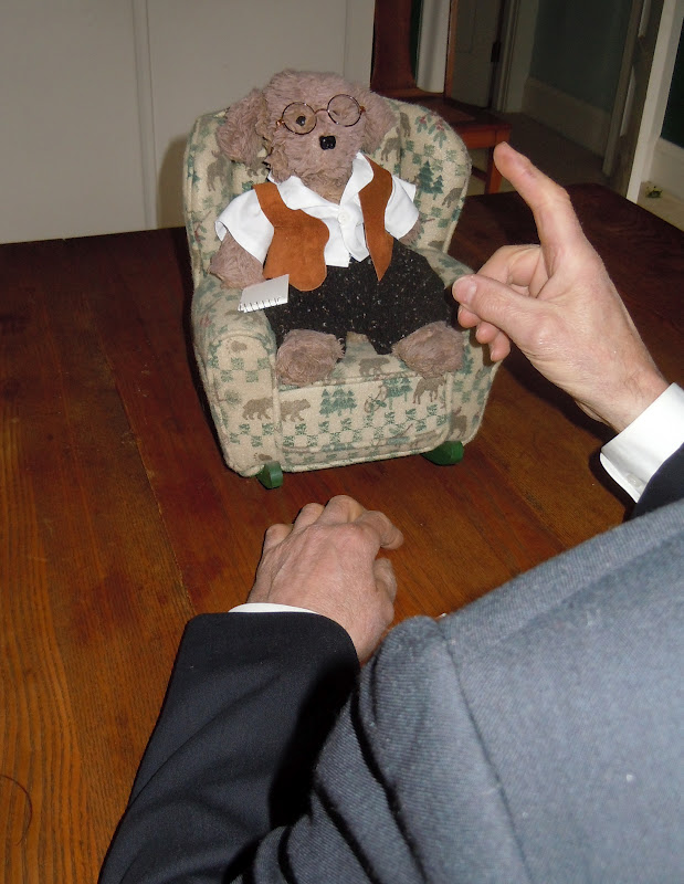 I am impressed by Pootie's dapper and professional attire. Where does one get trousers adapted to a tail? After all, "The clothes make the manuscript."