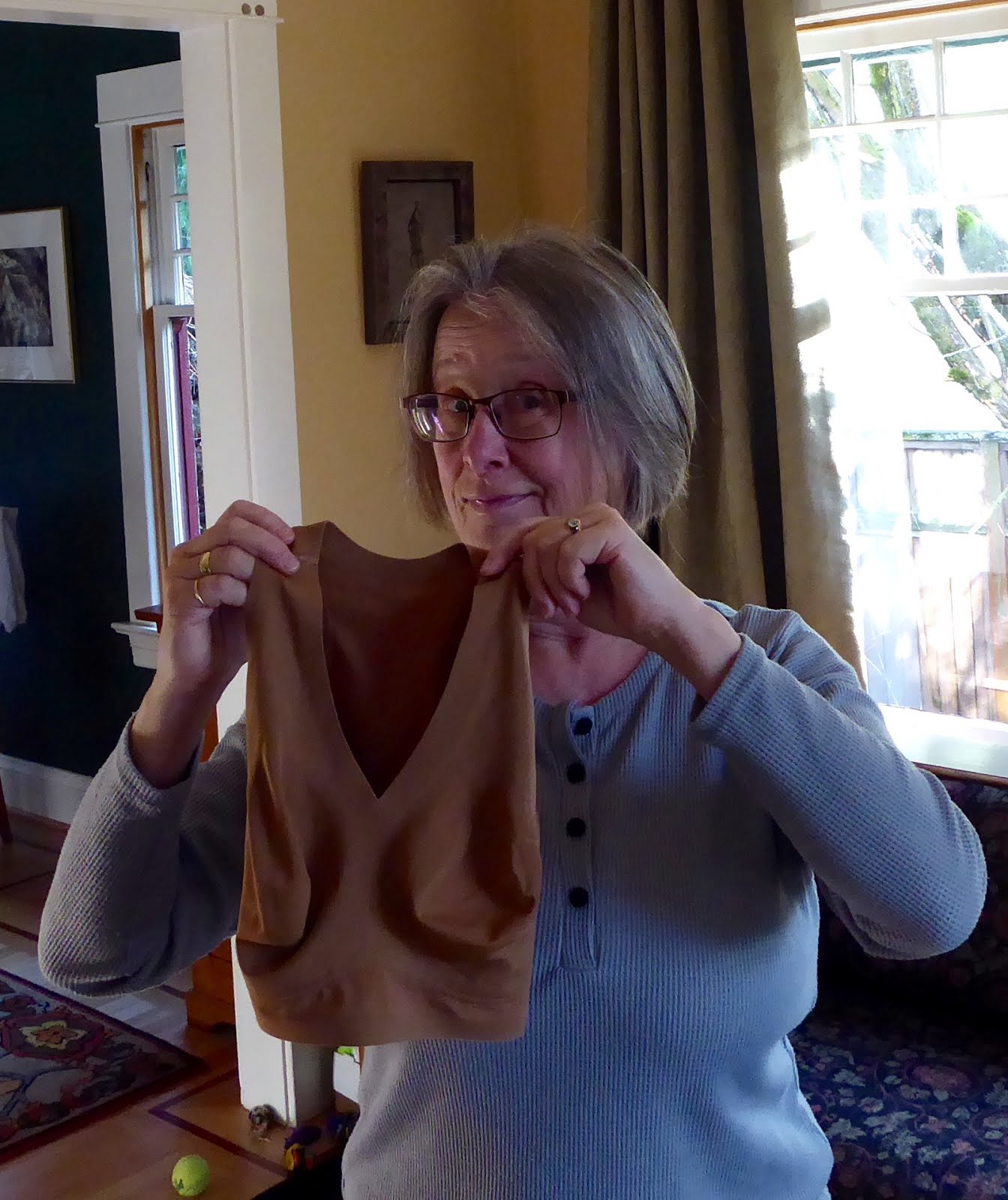 It reminds me of the thing I used to strain blackberry jelly in.No, wait…I was not wearing the thing. I strained the jelly through the thing. We called them jelly bags.It was long ago.I didn't wear a bra then.