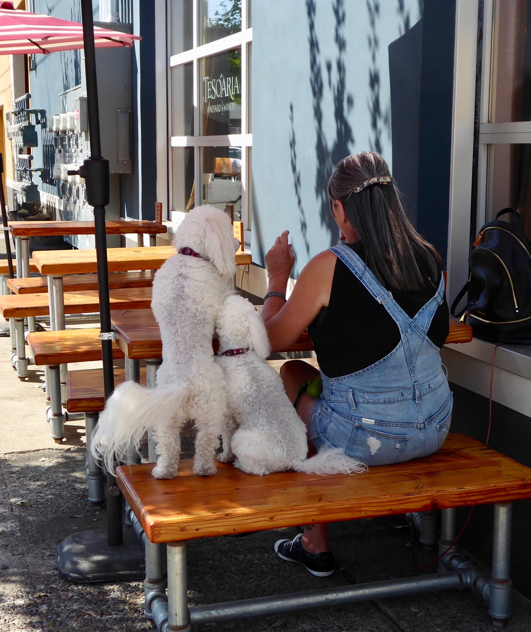 Here is a way you can tell you’re a dog. You are lost in adoration of your favorite person who is barking at you in a friendly way and after a good long while you pop your butt down on the floor for one second and back up again and your person is so very very happy! You did it! You made your person happy! Nothing makes you happier than making your person that happy and it only took one butt-pop! OH MY GOODNESS THERE’S A TREAT! It’s a wonderful world!
