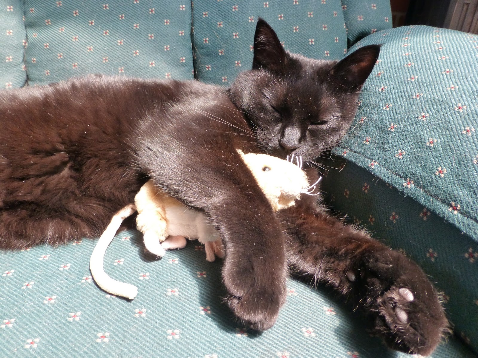 Now we hear the mournful low howl at least once a day, always accompanied by a surreptitious relocation of the gerbil, who remains unmarred. If you toss the gerbil, she does not run after it, but waits until we’re not looking and removes it to a different room. Obviously she cares deeply about the little fellow.