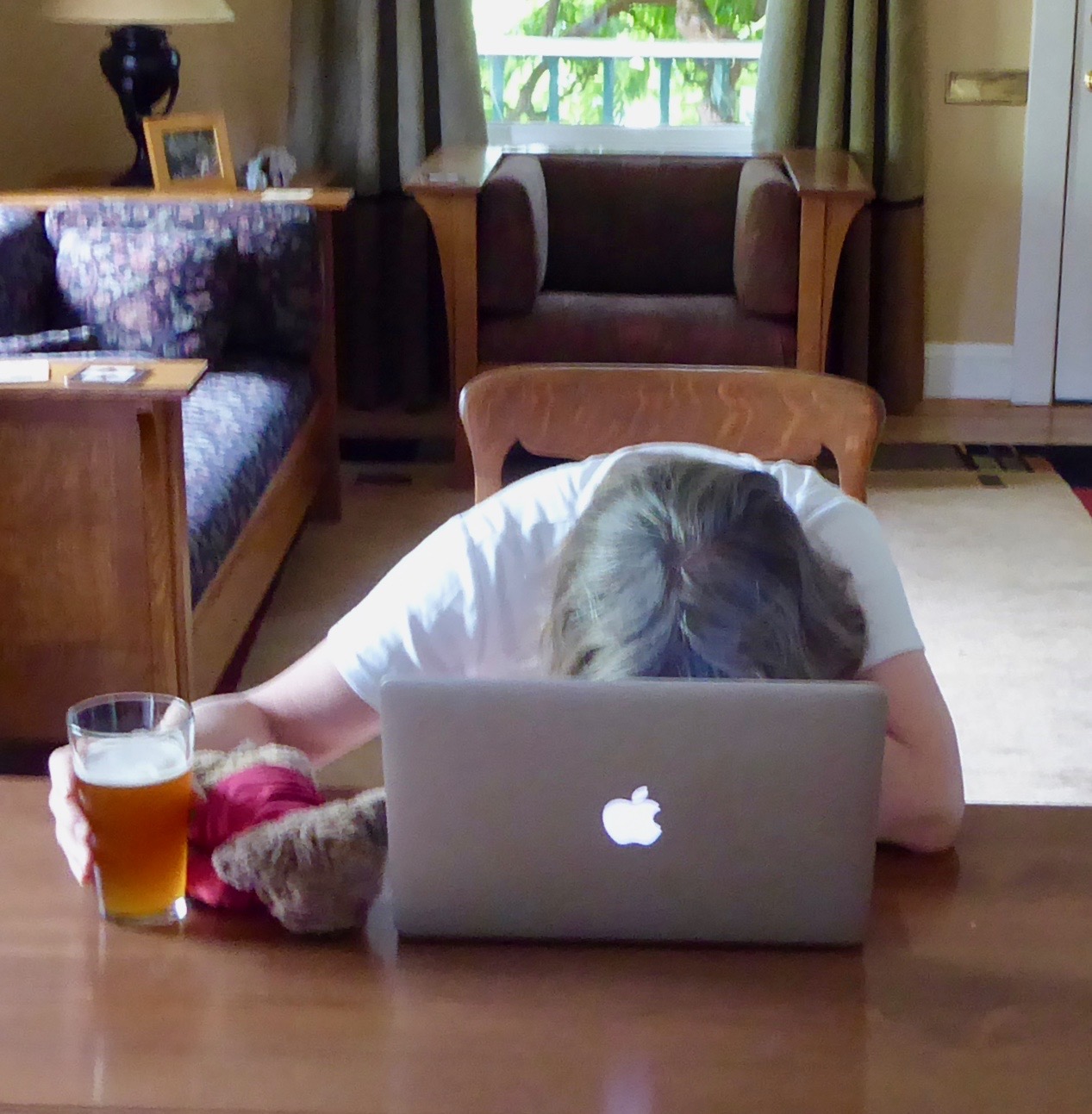 I love the picture of you and Pootie heads down with a beer. I do hope you find an agent soon, who actually reads your manuscript and passes it on to a publisher.