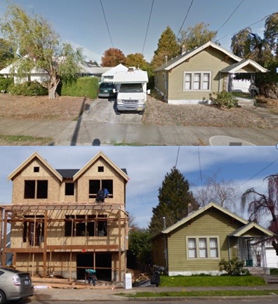 That last picture? I live in the wee blue house and people with lots of Monopoly money have built the HUGE grey house and others just like it behind my little house.