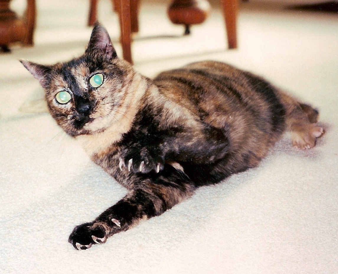 Tater is more businesslike. She’s caught a few of them, and, unlike Larry, she renders them inoperable right away. She’s a Git-R-Done kind of cat. The other night we found a gigantic mouse stiff on its back in the basement. Saints be praised, Tater is apparently not the type to drop prizes on the bedcovers.