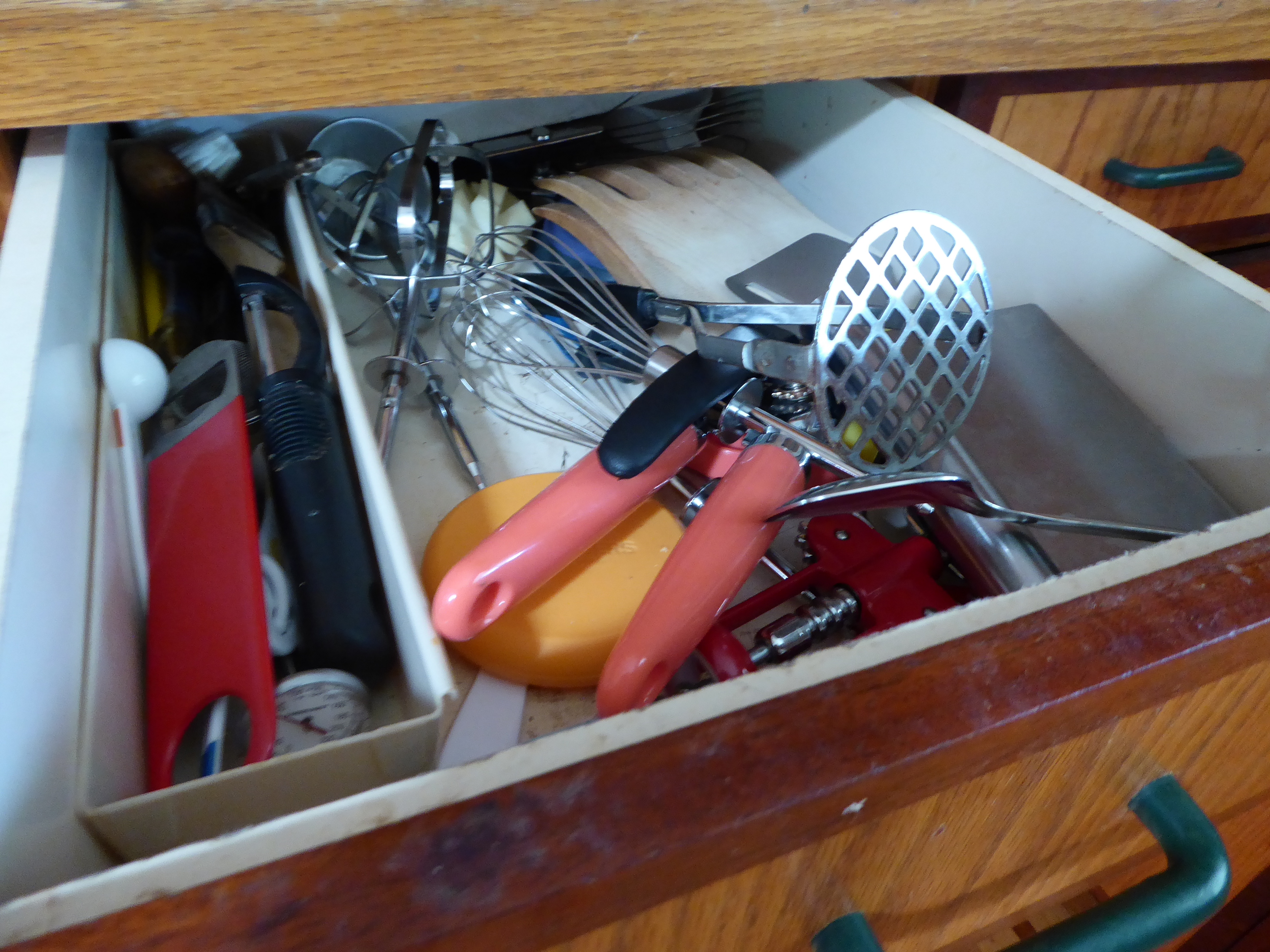 Because this thing feels like a junk drawer, full of orphaned knobs, mystery keys, old twist-ties. Just shut the drawer, I’m told, but the sight offends my senses. I just know one of those unknown contacts is the potato masher that will turn sideways and I’ll never be able to open that drawer again.