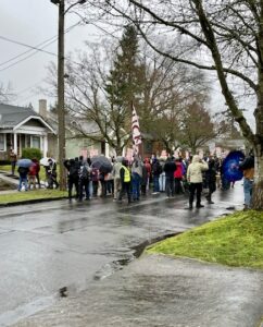 I guess you know it’s Portland when you take off on your daily walk and trip over an ICE protest right in the middle of your neighborhood. That’s old red hat around here. I followed the sound from a megaphone to a small house on a side street. It was a curious sight.
